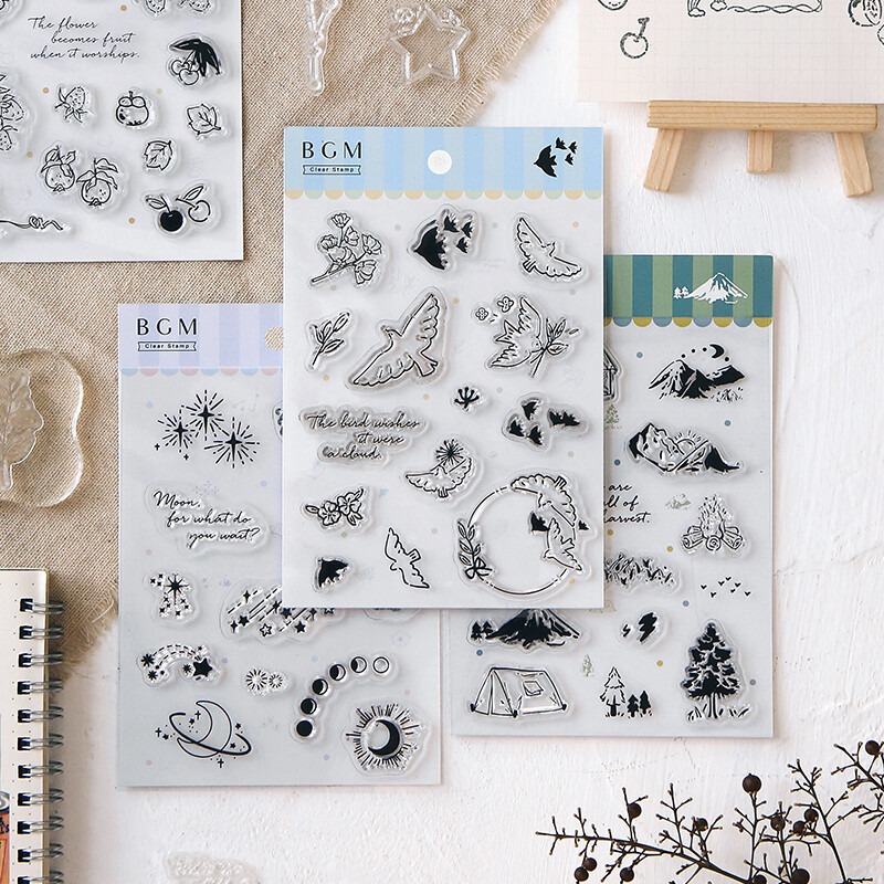 This beautifully curated set of BGM clear stamps is made for journaling lovers, crafters, and scrapbookers! With 6 delightful styles to choose from—ranging from life logs to cute clips and floral details—these transparent stamps are easy to use with any acrylic block. Simply press, ink, and personalize your page with precision.