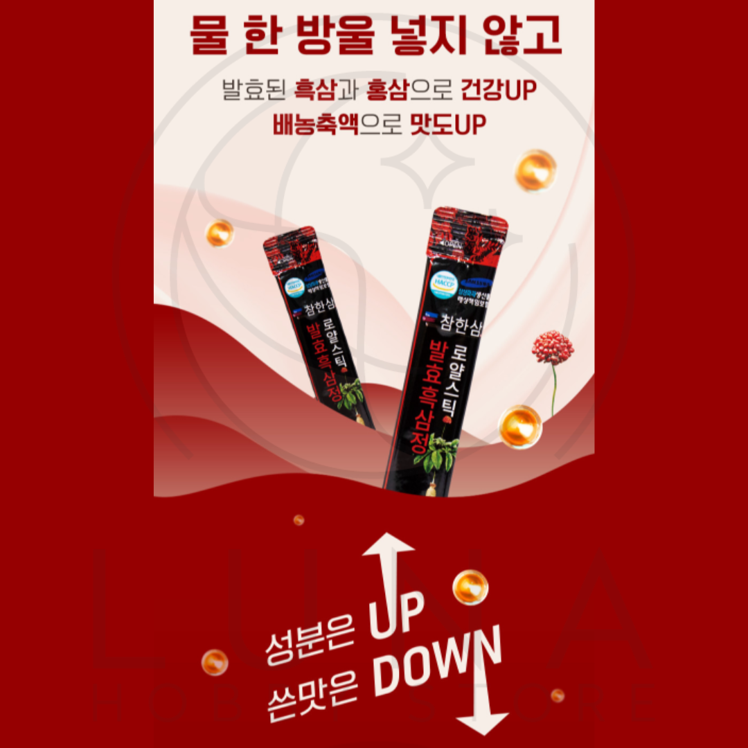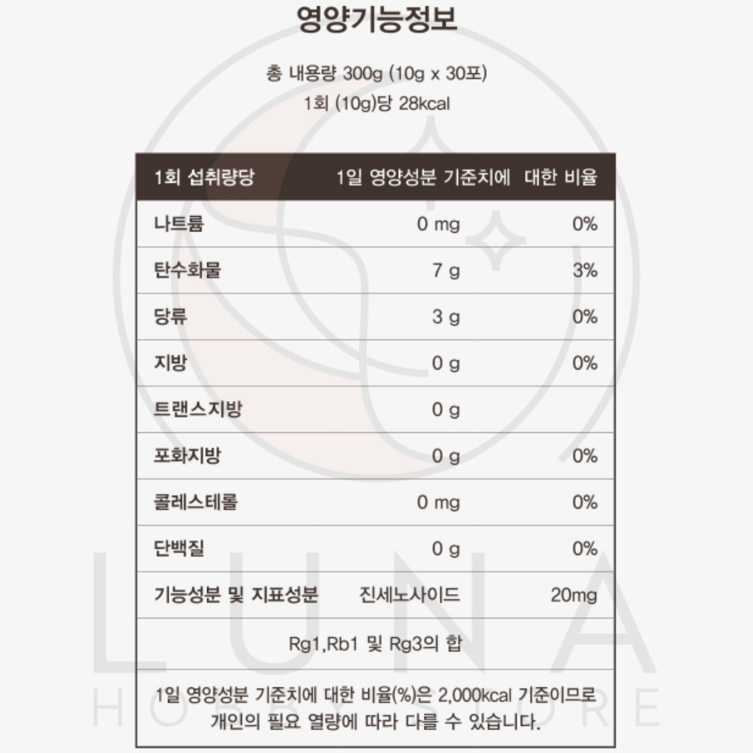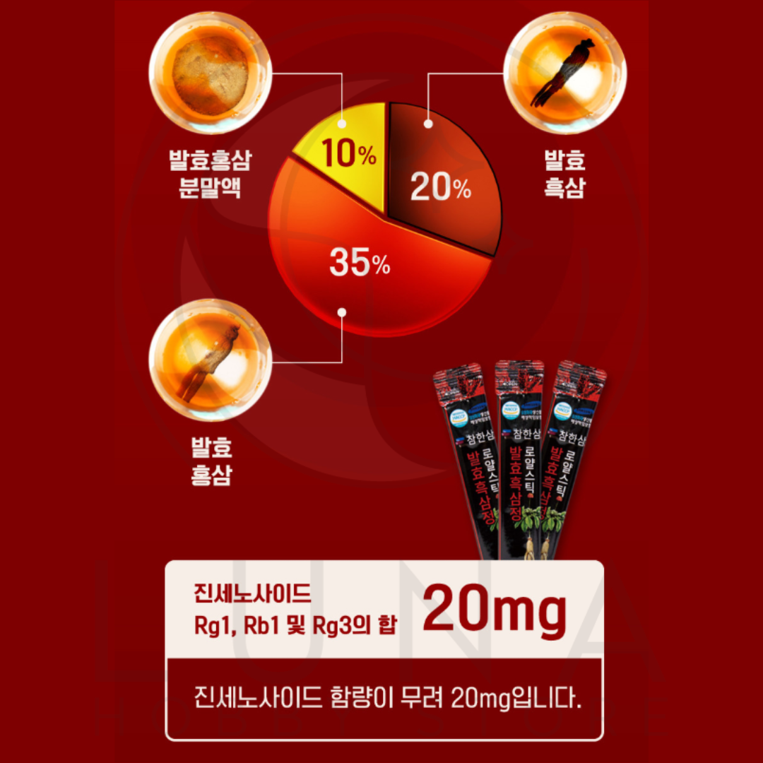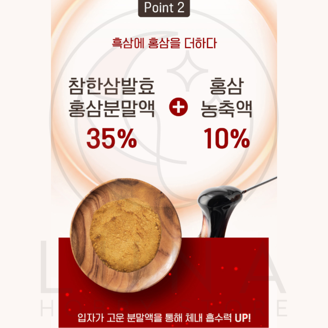 🌿 Formula: 20% fermented black ginseng extract, 35% fermented red ginseng powder, 10% red ginseng extract, 35% pear concentrate