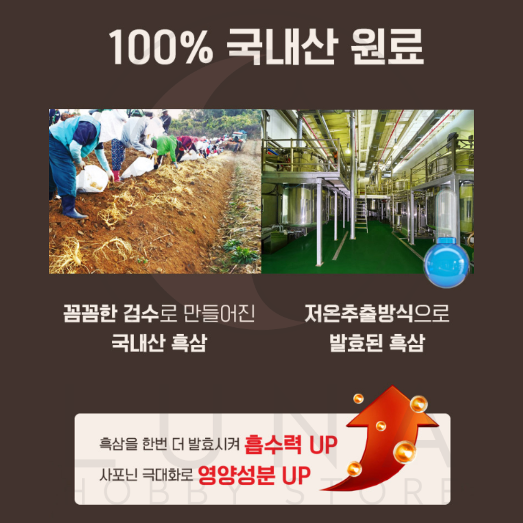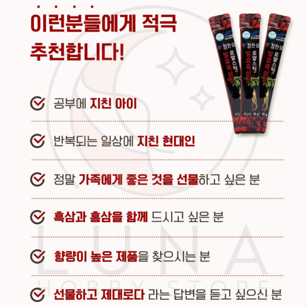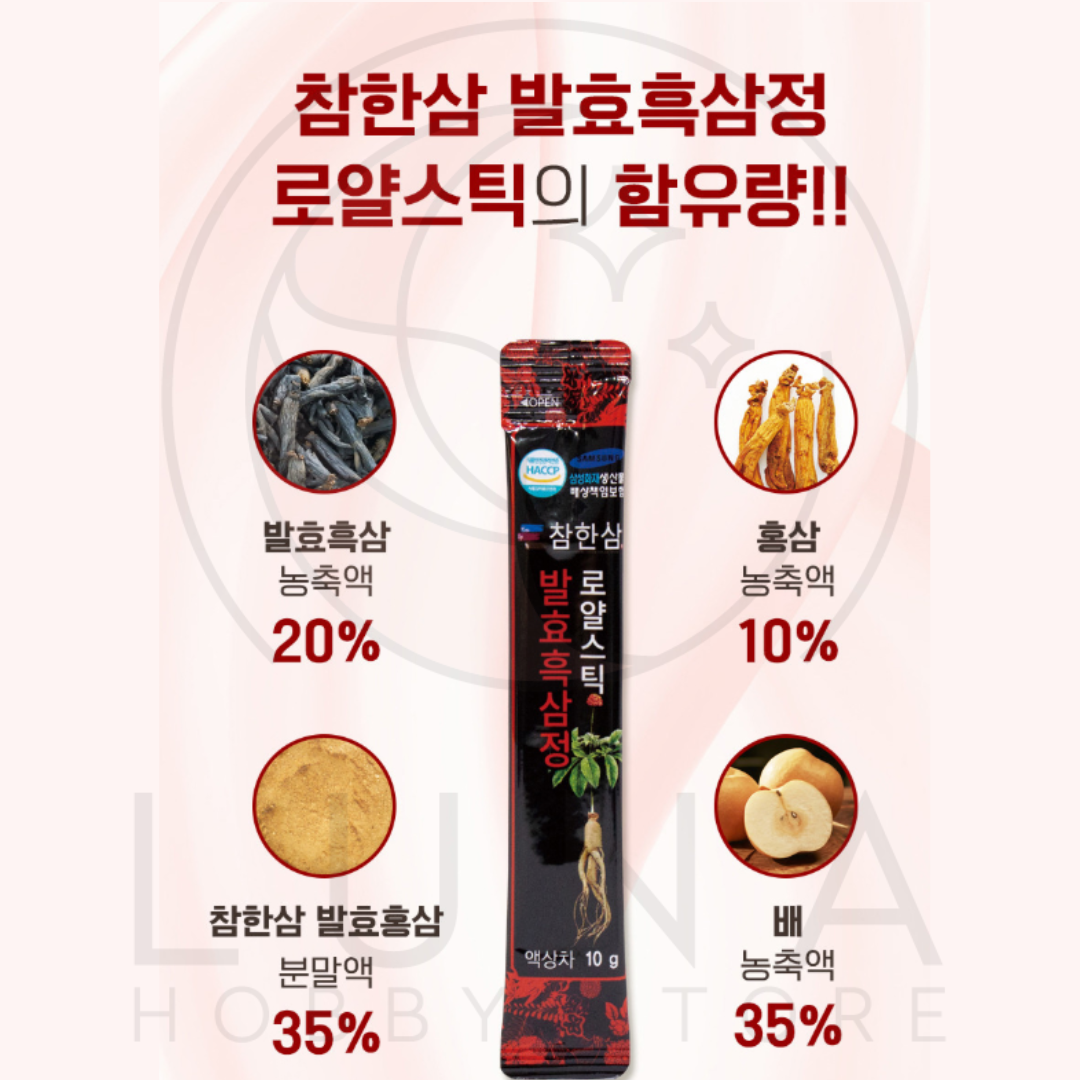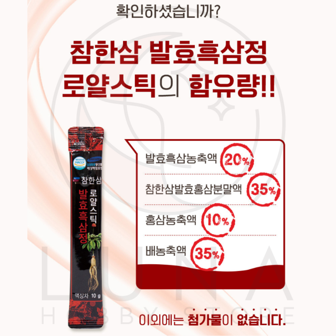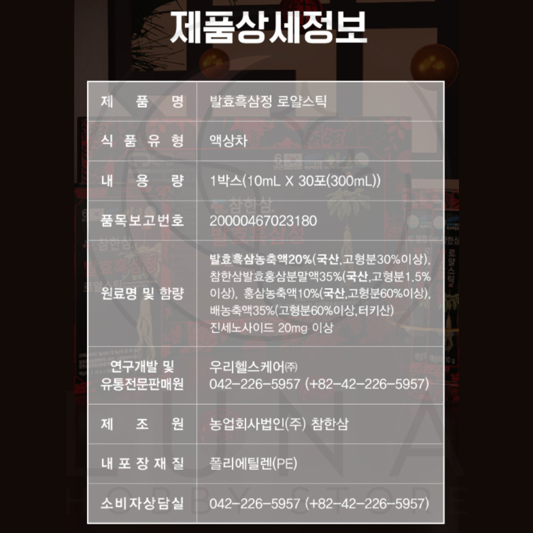 🌿 Formula: 20% fermented black ginseng extract, 35% fermented red ginseng powder, 10% red ginseng extract, 35% pear concentrate