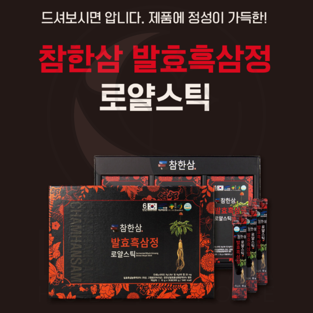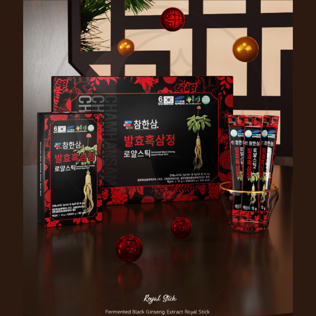 Chamhansam | 6-Year-Old Fermented Black Ginseng Extract Royal Stick | 참한삼 발효흑삼정 로얄스틱 | 10g x 30 Sticks