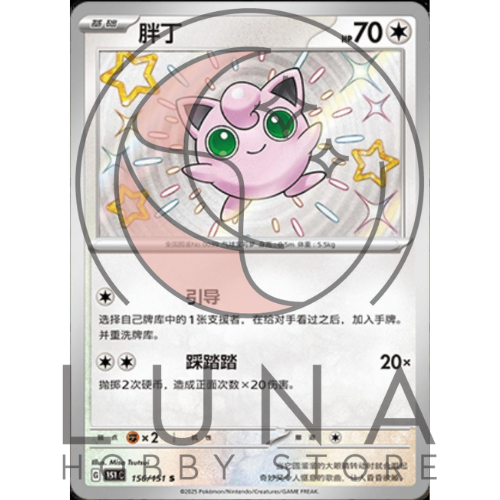 ![[CN] 胖丁 Jigglypuff (Shiny) | Scarlet & Violet: 151 | 156/151 S](https://lunahobbystore.com/wp-content/uploads/2025/05/Jigglypuff-156-Pokemon-Chinese-Scarlet-Violet-151.png)