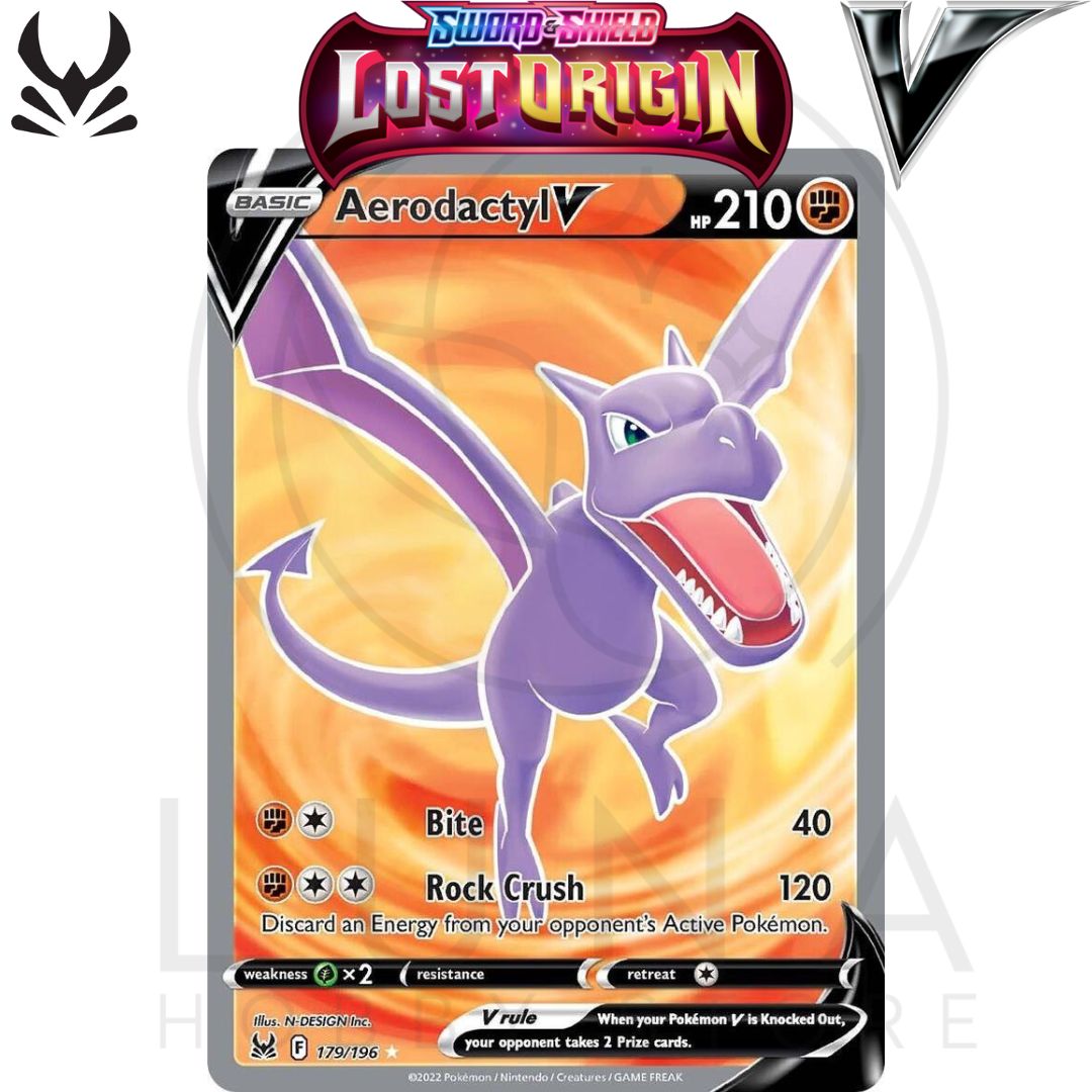 🦖 Harness the prehistoric might of Aerodactyl V from the Lost Origin expansion! This Ultra Rare Fighting-type Pokémon combines aggressive attacks with disruptive Energy removal — a must-have for collectors and competitive players alike.