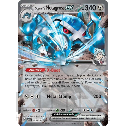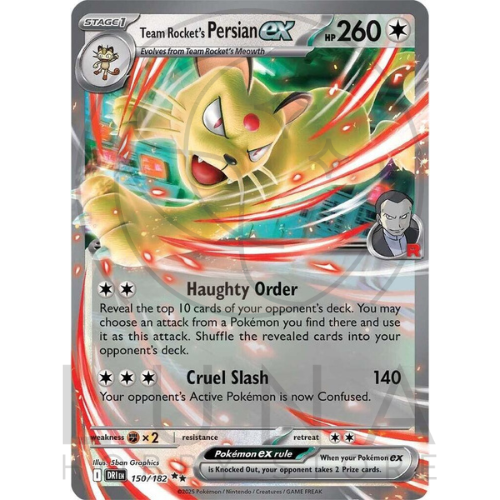 🐟 Dondozo ex (#066/182), ⚡ Electivire ex (#069/182), 🧠 Team Rocket’s Mewtwo ex (#081/182), 🌿 Arboliva ex (#023/182), 🔥 Team Rocket’s Moltres ex (#031/182), 👿 Marnie’s Grimmsnarl ex (#136/182), 🤖 Steven’s Metagross ex (#145/182), 🐞 Yanmega ex (#003/182), 🌈 Ethan’s Ho-Oh ex (#039/182), ❄️ Cetitan ex (#065/182), 🦴 Arven’s Mabosstiff ex (#139/182), 🪨 Regirock ex (#101/182), 🐉 Cynthia’s Garchomp ex (#104/182), 💀 Team Rocket’s Nidoking ex (#119/182), 🦇 Team Rocket’s Crobat ex (#122/182), 🪲 Rabsca ex (#025/182), 🐱 Team Rocket’s Persian ex (#150/182)