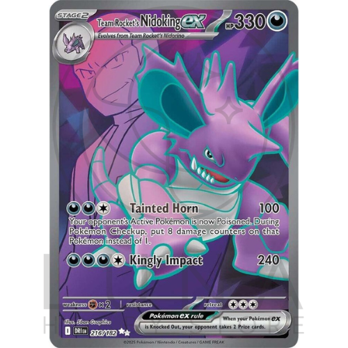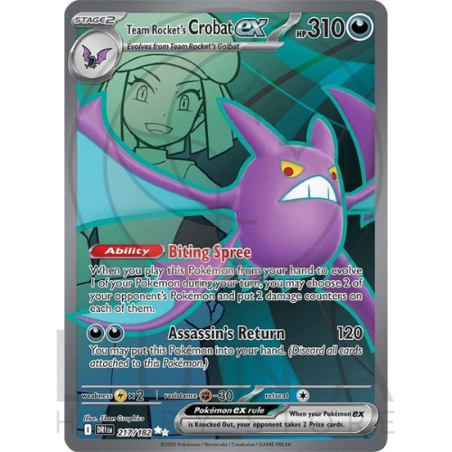 🍃 Yanmega ex #206/182, 🌿 Arboliva ex #207/182, 🔥 Team Rocket’s Moltres ex (Alt) #031/182, 🔥 Ethan’s Ho-Oh ex (Alt) #039/182, ❄️ Cetitan ex #210/182, 🌊 Dondozo ex #211/182, ⚡ Electivire ex #212/182, 🧠 Team Rocket’s Mewtwo ex (#213/182), 🪨 Regirock ex #214/182, 👊 Cynthia’s Garchomp ex #215/182, 🌑 Team Rocket’s Nidoking ex #216/182, 🦇 Team Rocket’s Crobat ex #217/182, 🐾 Arven’s Mabosstiff ex #218/182, 🐱 Team Rocket’s Persian ex #219/182