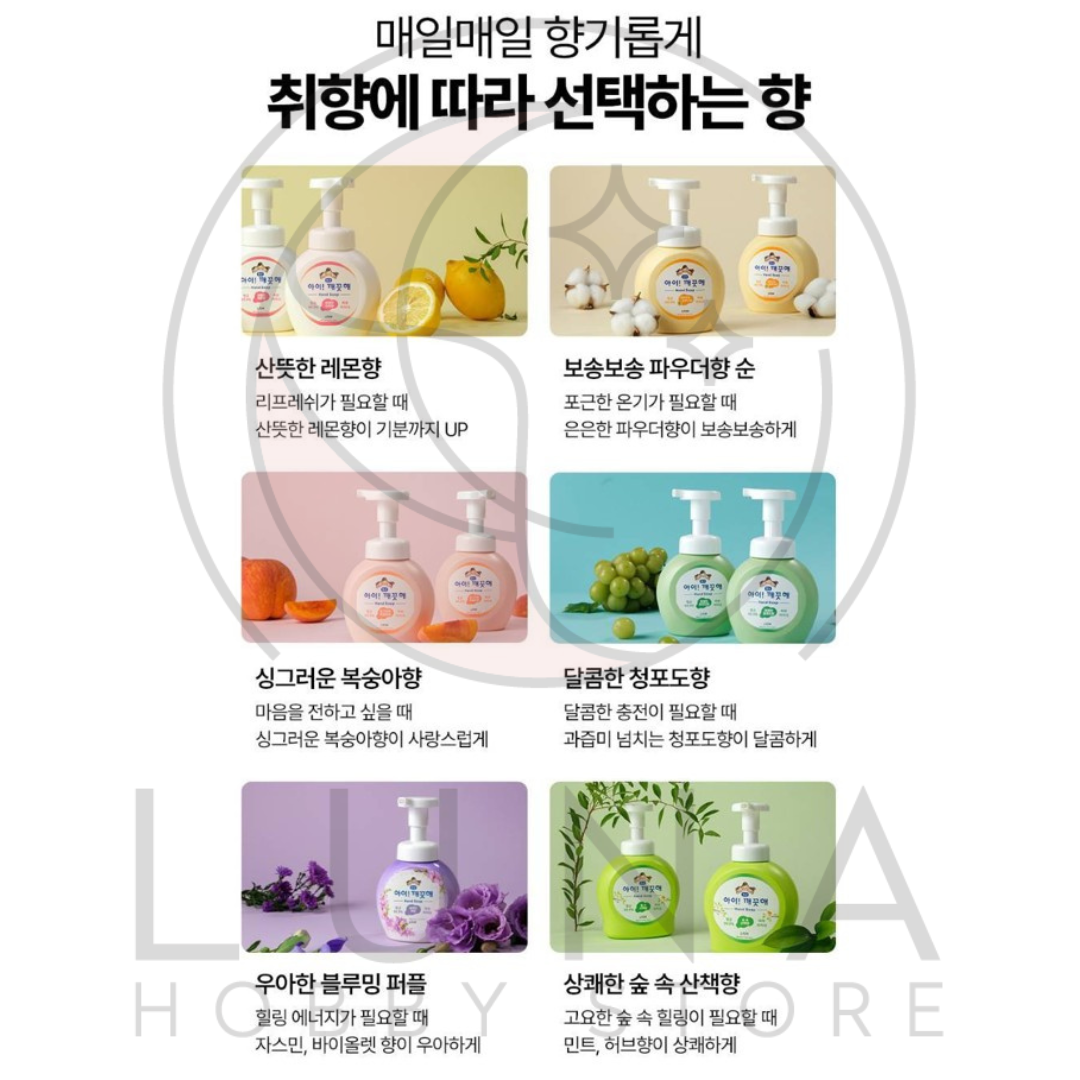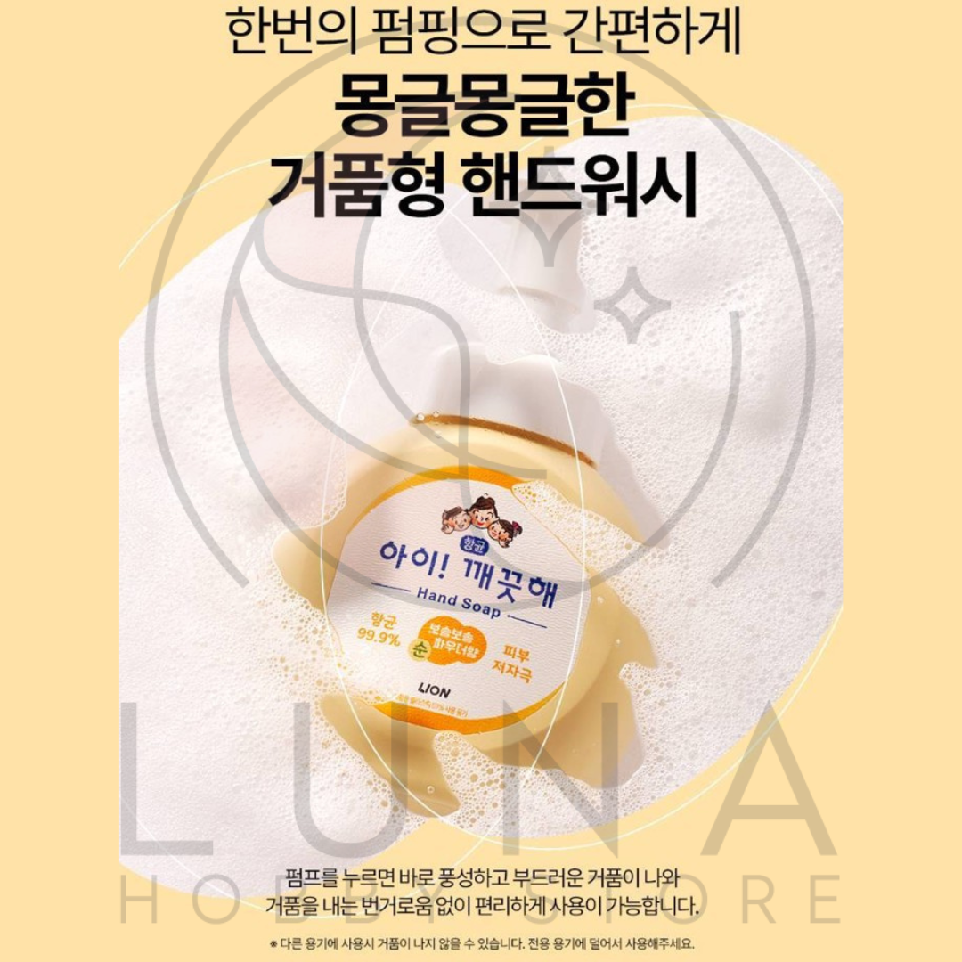 🧼 Keep little hands fresh and clean with 아이! 깨끗해 Hand Soap — the beloved Korean foaming soap that’s gentle, effective, and fun for kids to use! Each variant is formulated to kill 99.9% of germs while maintaining moisture balance, with scents that make hand washing an enjoyable habit.