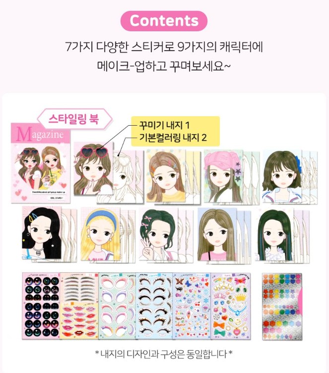 Transform blank faces into stunning idols with this hands-on makeup design set! From bold lashes to shimmering shadows, your creative choices bring each character to life. Season 2 includes updated templates and even more sticker options to mix, match, and glam up your style icons!