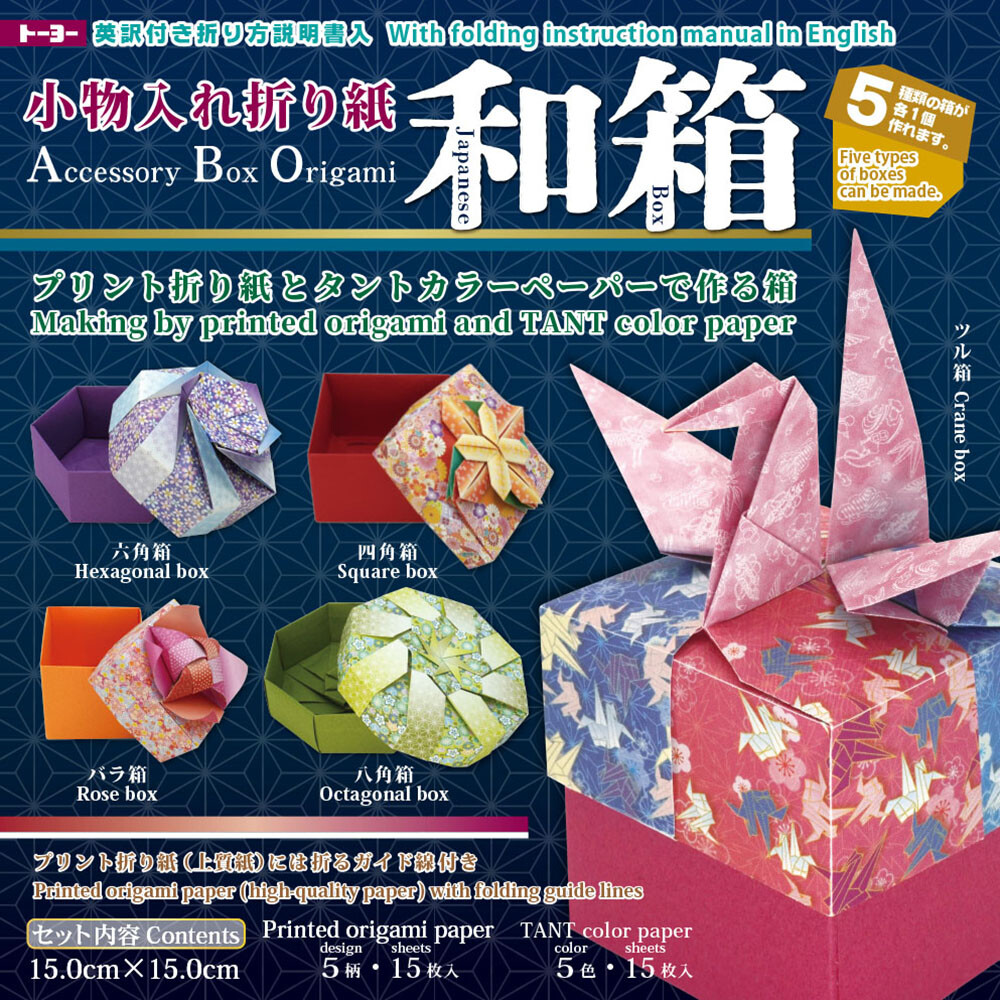 This Japanese Accessory Box Origami Kit lets you fold your own stunning storage boxes using TANT color paper and printed origami paper with folding guides. Learn how to make 5 unique box styles, including crane, rose, hexagonal, square, and octagonal shapes. A perfect project for craft lovers, gift box creators, or those who love Japanese design culture.