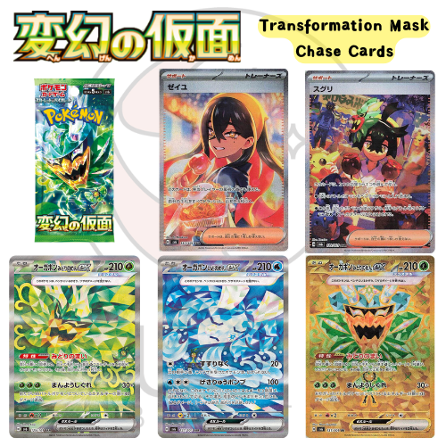 Unveil secrets with Transformation Mask / 変幻の仮面, the sixth main set in Japan’s Scarlet & Violet era. Featuring Teal Mask Ogerpon and a lineup of haunting, illusion-themed Pokémon, this set captures eerie folklore and bold battle mechanics—perfect for collectors and competitive decks!
