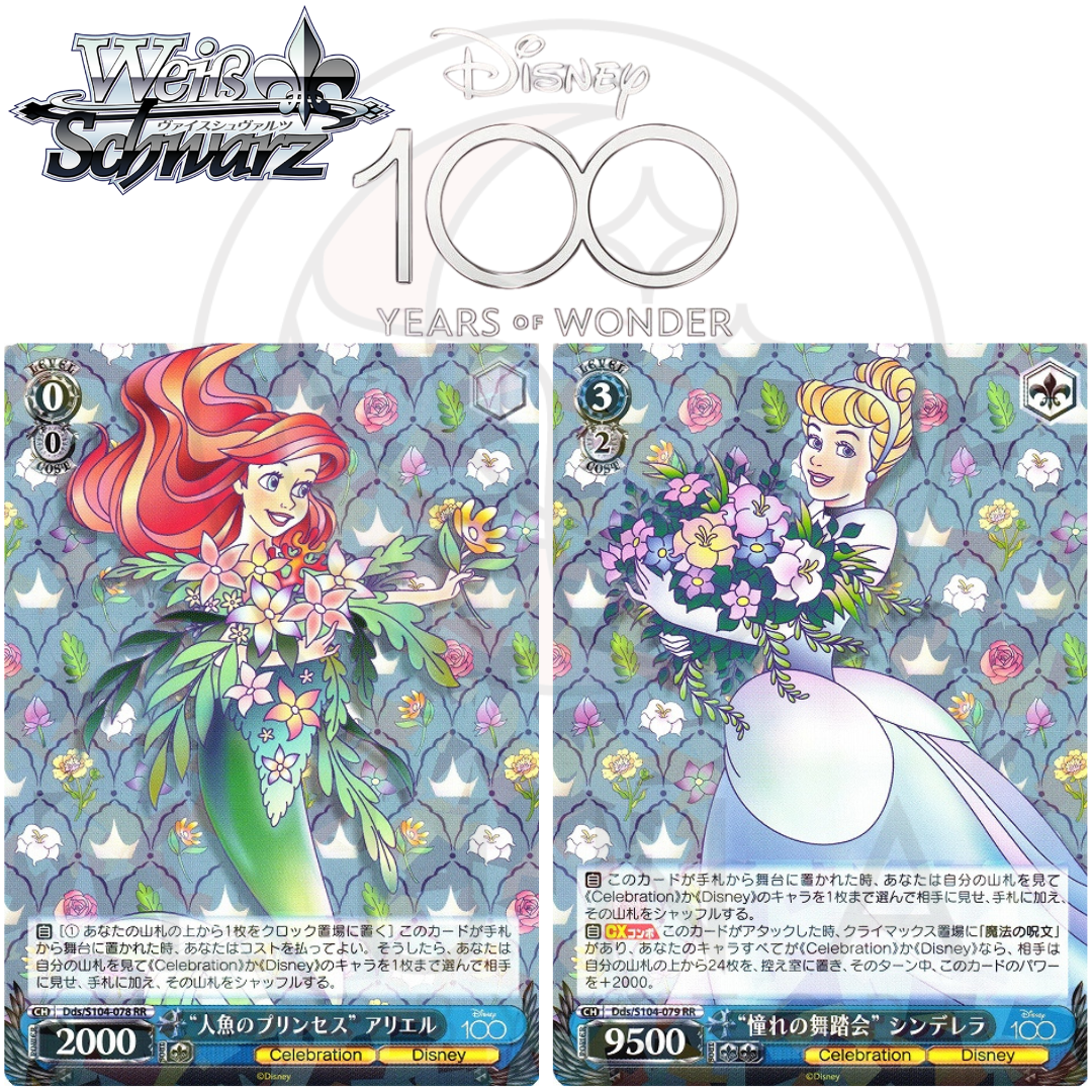🪸 “人魚のプリンセス” アリエル (The Little Mermaid, Ariel) Dds/S104-078 RR, 👗 “憧れの舞踏会” シンデレラ (The Enchanted Ball, Cinderella) Dds/S104-079 RR