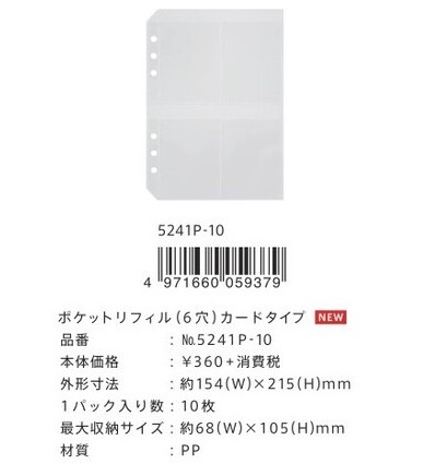 📁 KING JIM Otona Seal Collection – Pocket Refill (6-Hole Card Type, 10-Pack)