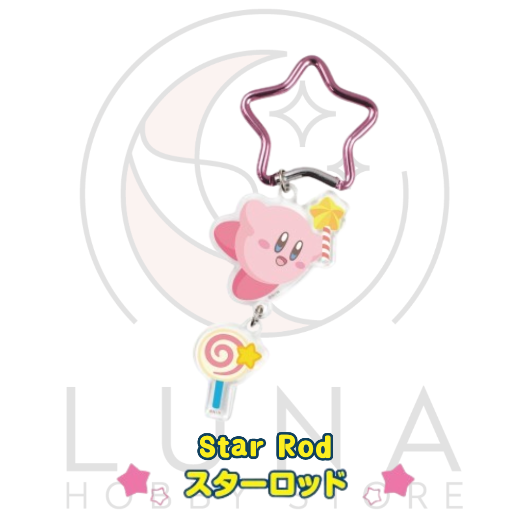 ✨ 1x Acrylic keychain featuring a star-shaped carabiner, Kirby charm, and themed item charm (based on selected variant)