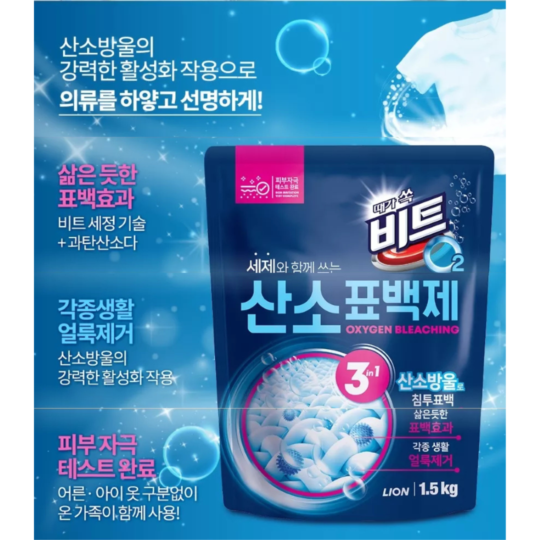 Lion | Beat O2 Oxygen Bleach Powder | 비트 산소계 표백제 1.5kgLion | Beat O2 Oxygen Bleach Powder | 비트 산소계 표백제 1.5kg