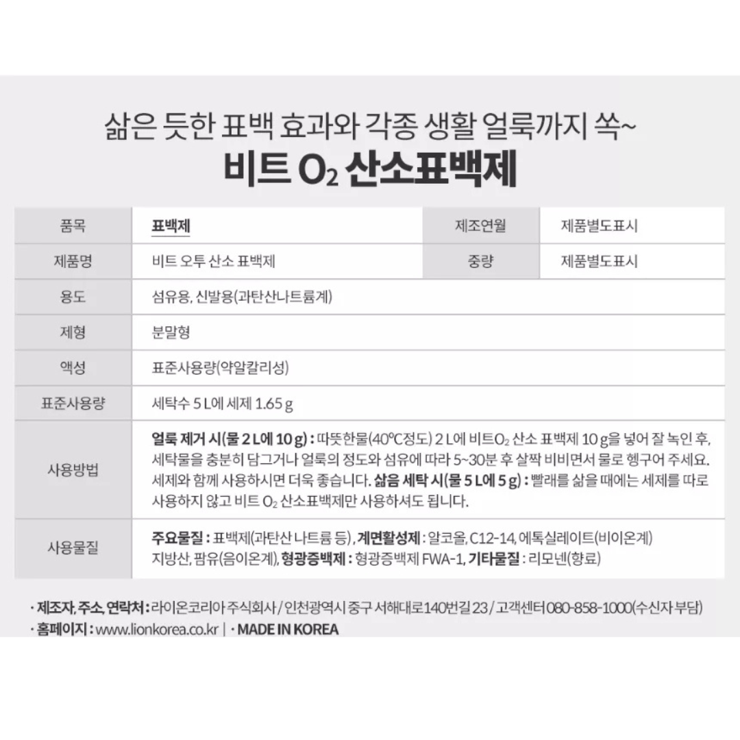 🧺 Lion | Beat O2 Oxygen Bleach Powder | 비트 산소계 표백제 1.5kg
