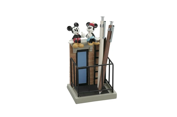 Add character to your workspace with this adorable Mickey & Minnie Balcony Pen Stand, crafted from durable resin with metal accents. This charming organizer brings the world’s favorite mouse couple to life on a sculpted brick rooftop, complete with black railings and romantic details.