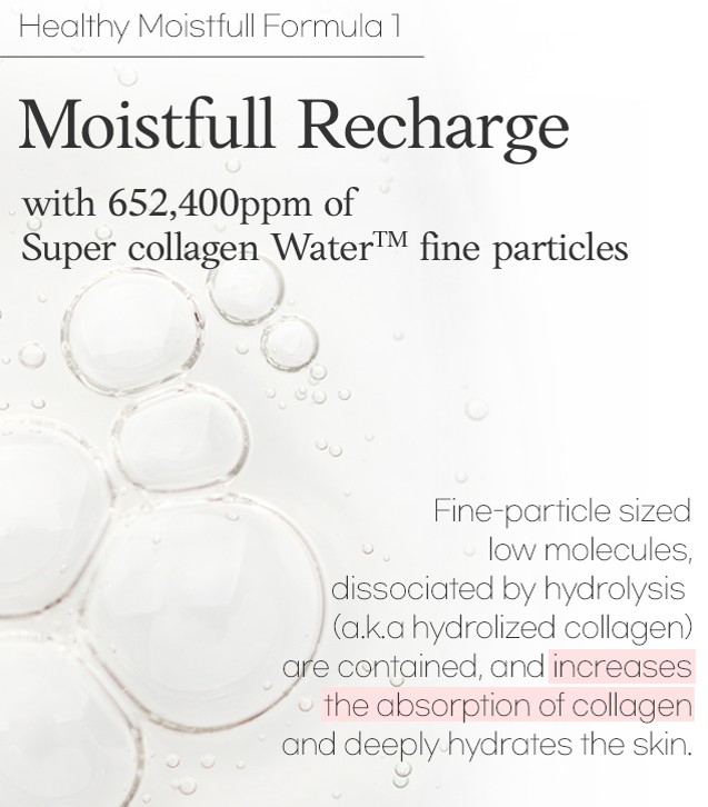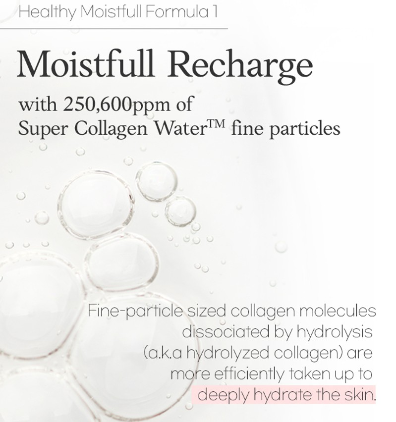 - Super Collagen Water™ – Ultra-fine Hydrolyzed Collagen molecules penetrate deeply for long-lasting hydration.