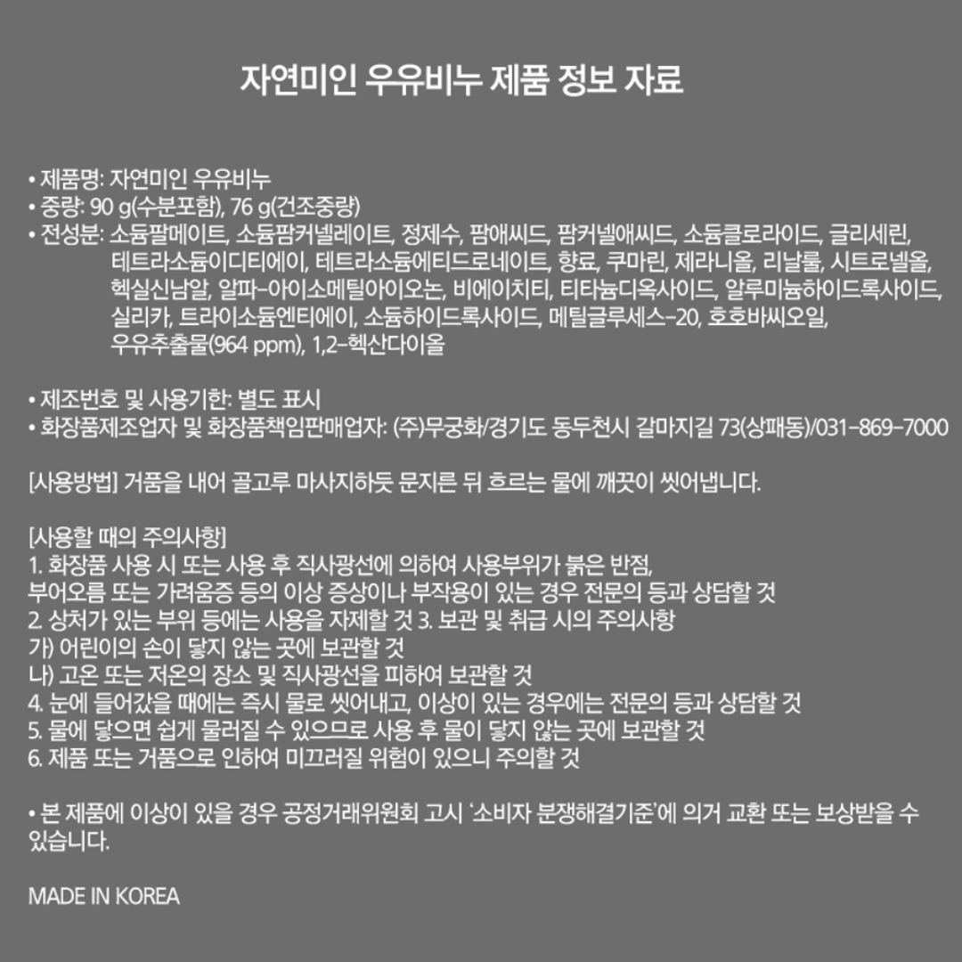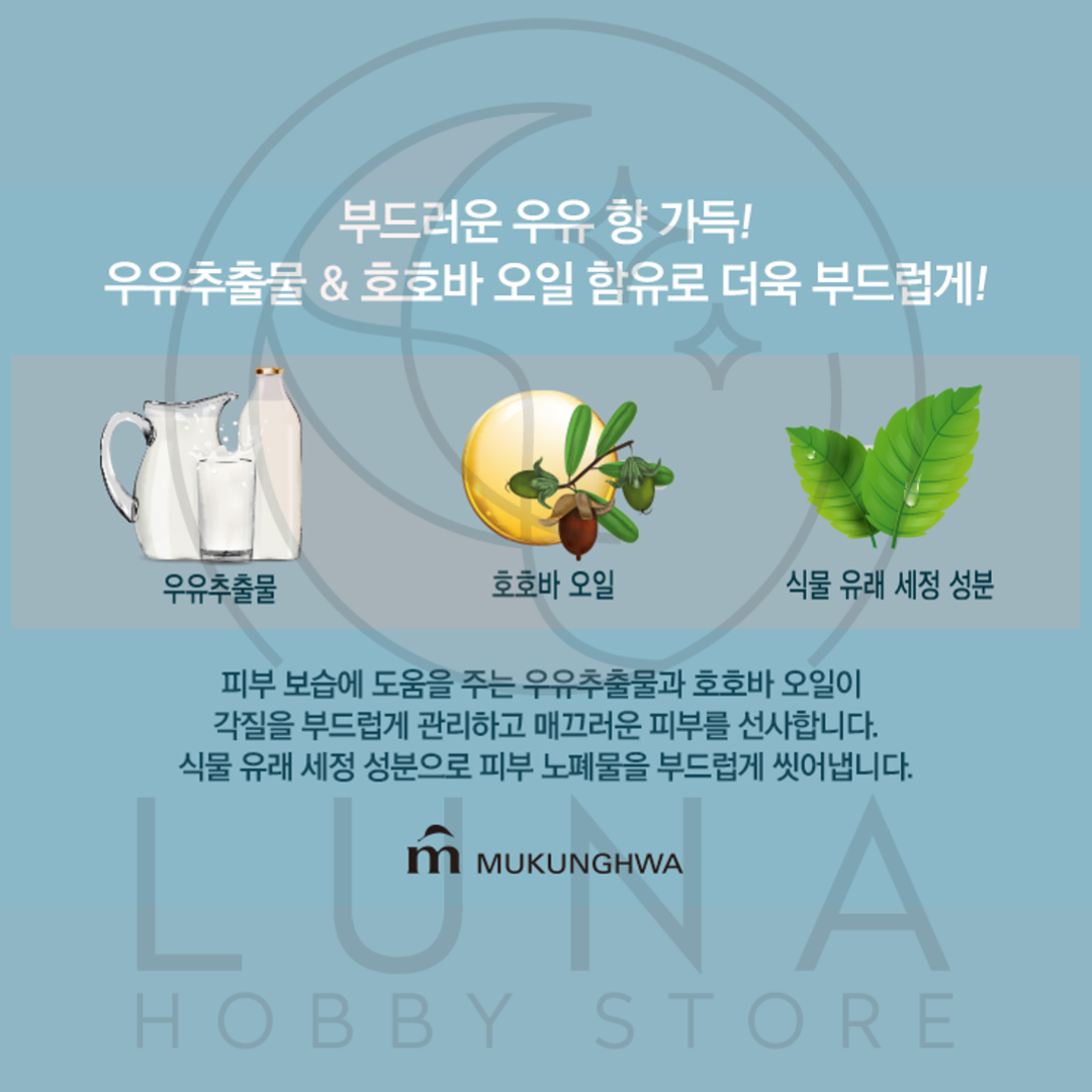 Mukunghwa’s Natural Beauty Milk Soap is enriched with milk extract and jojoba oil to soften rough skin, gently remove dead skin, and provide long-lasting moisture. A nourishing daily bar soap with a mild milky fragrance and plant-based cleansing ingredients.