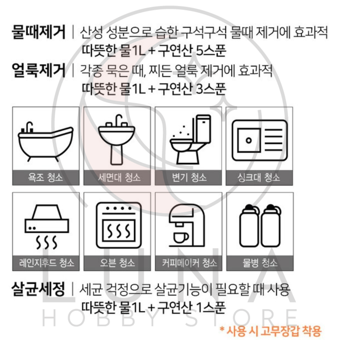 Tag @lunahobbystore to show how you clean naturally with 네츄럴오가닉 구연산. Your before-and-after photos might get featured!