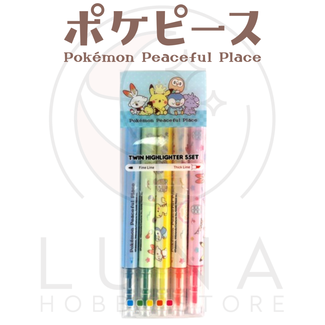 Brighten up your notes with the adorable charm of the Pokémon Peaceful Place highlighter set! Each dual-tip pen features both fine and thick lines with beloved Poképeace characters and soft pastel ink colors — perfect for journaling, studying, or gift-giving.