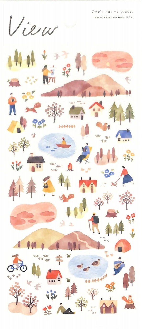 ✨ Slow down and savor the golden hour with this beautifully illustrated sticker sheet from MIND WAVE’s View series. Featuring cozy cottages, hikers, sunset skies, and whimsical forest scenes—this sheet captures the magic of a peaceful 6PM stroll in a tranquil town.